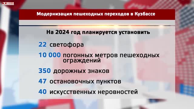 На совещании в правительстве региона обсудили планы. Так в предстоящем сезоне в Кузбассе планируется установить или заменить 22 светофора, смонтировать 10 тысяч метров ограждения, обустроить 40 искусственных неровностей. По данным областного министерства ЖКХ и дорожного комплекса всего в регионе почти 5 тысяч переходов, 713 из них находятся вблизи школ. Также совместно с ГАИ выявлены аварийно-опасные места на других участках дорог. Определены больше 1000 переходов, лишь половина из них – в нормативном состоянии.