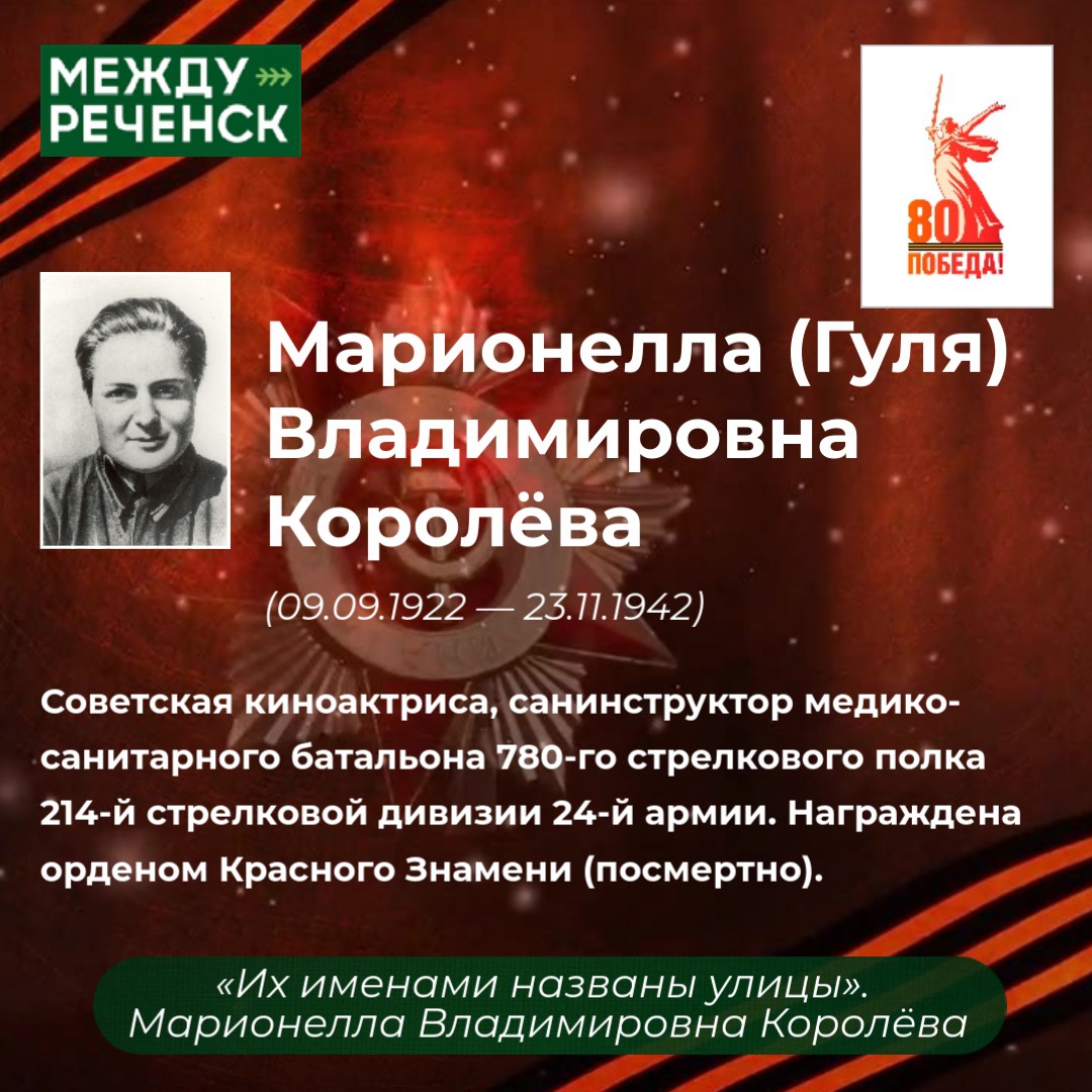 Одна из улиц названа в честь советской киноактрисы Марионеллы Королёвой.