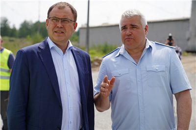 Врио губернатора Кузбасса Илья Середюк и начальник Главного управления по обеспечению безопасности дорожного движения МВД России Михаил Черников проинспектировали ход работ на Северо-Западном обходе города Кемерово.