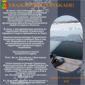 Администрация Анжеро-Судженского городского округа сообщает Вам о том, что оборудование и организация несанкционированных купелей на территории городского округа запрещены.