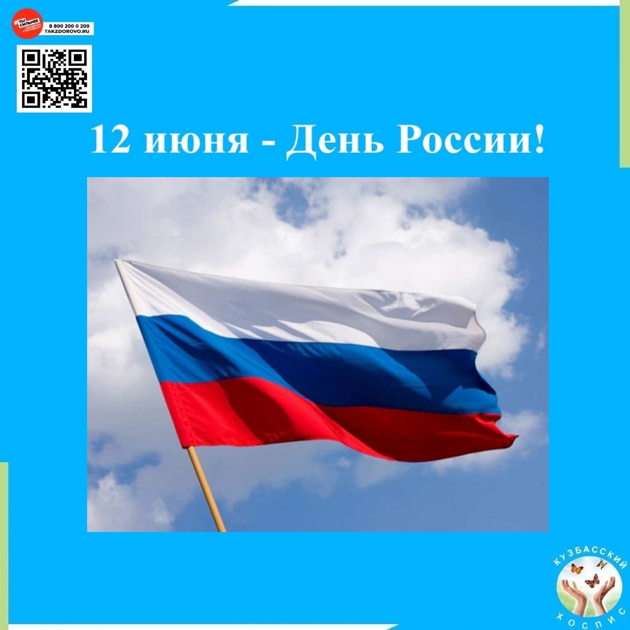 Дорогие друзья! Коллектив Кузбасского хосписа сердечно поздравляет вас с праздником нашей страны — Днем России!