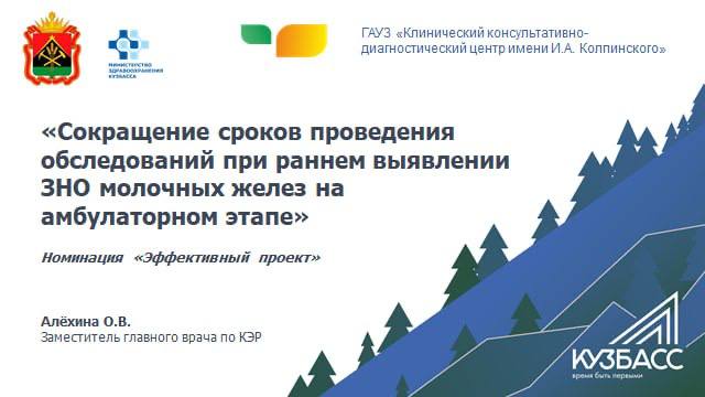 Команда диагностического центра заняла 1 место в номинации «Эффективный проект», название проекта «Сокращение сроков проведения обследований при раннем выявлении ЗНО молочных желез на амбулаторном этапе».