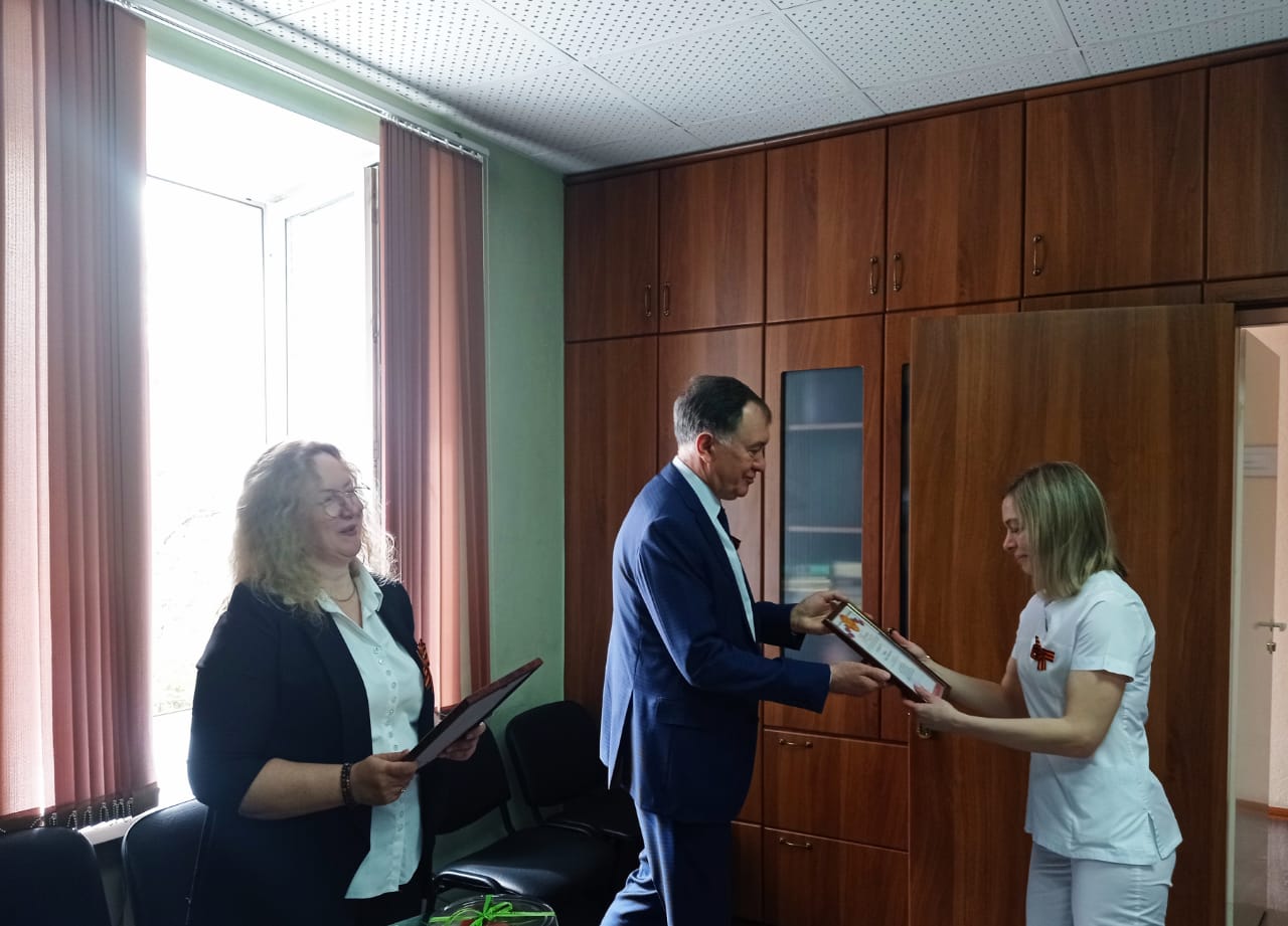 С наступающим праздником их поздравили главный врач Евгений Георгиевич Белов и главная медицинская сестра Светлана Анатольевна Рачилина.