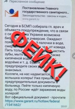 «В Томской области на номера телефонов пользователей мессенджеров массово стали поступать сообщения, содержащие ложную информацию о биологической диверсии и вспышке холеры. Данная информация является фейковой», — говорится в сообщении Роспотребнадзора.